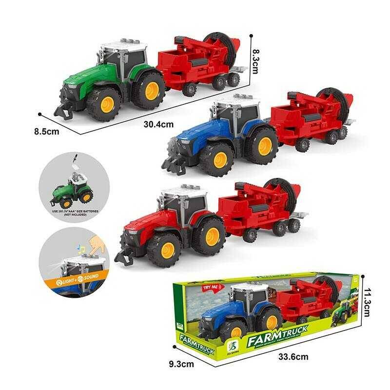 Трактор 0488-604 D (96/2) 3 кольори, причеп, підсвічування, звук, рухомі елементи причепа, прогумовані колеса причепа, в коробці, ВИДАЄТЬСЯ МІКС