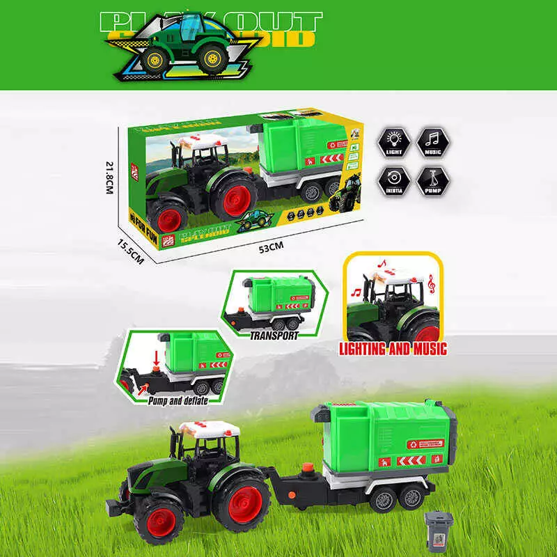 Трактор 687-147 B (18/2) “Сміттєвоз”, довжина: 50 см, причеп, інерція, підсвічування, звук, помповий підіймач, механічний підіймач, в коробці