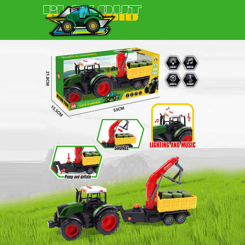 Трактор 687-149 B (18/2) довжина: 50 см, причеп - самоскид, кран, інерція, підсвічування, звук, помповий підіймач, вантаж, капот підійм., в коробці