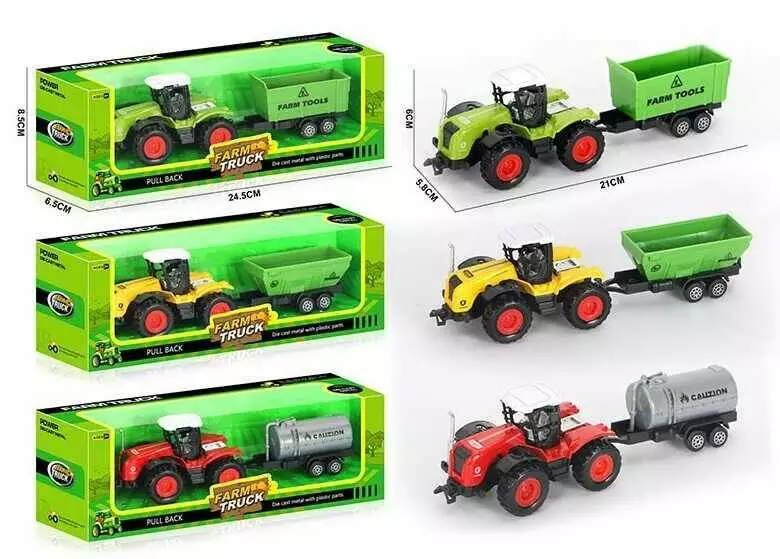 Трактор 955-201 (144/2) 3 види, причіп, розмір: 21х5.8х6 см, металопластик, інерція, в коробці, ВИДАЄТЬСЯ МІКС ВИДІВ