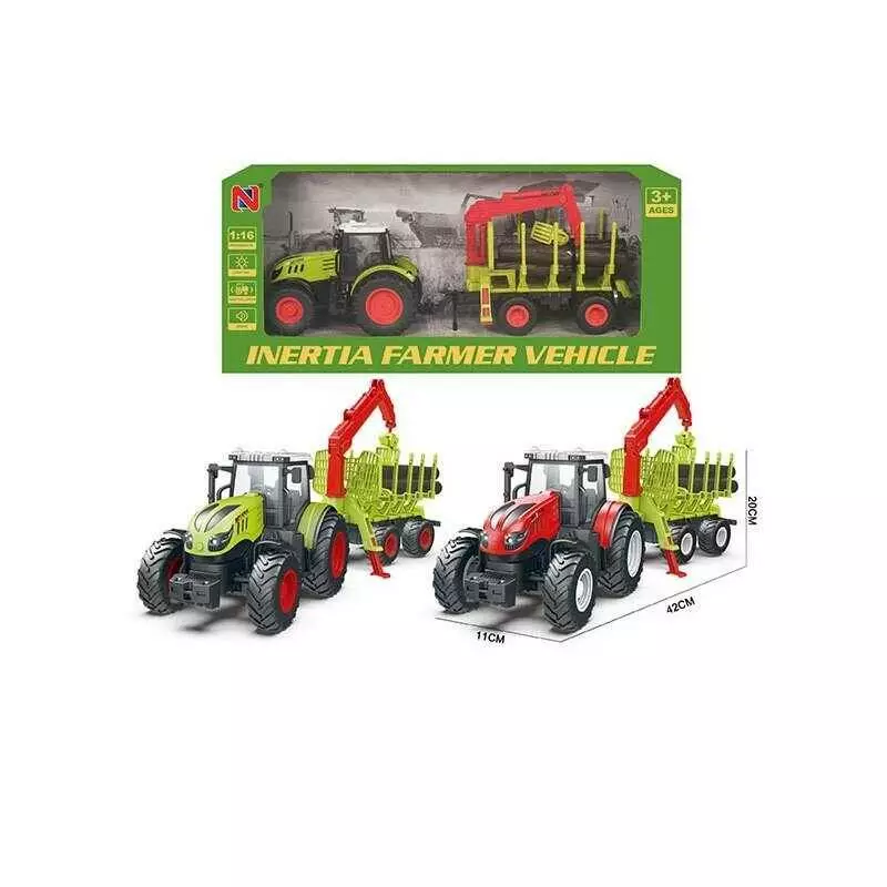 Трактор 99-56 B (24) 2 кольори, масштаб: 1:16, причеп, маніпулятор, інерція, підсвічування, звук, гумові колеса, вантаж, рухомі елементи, в коробці