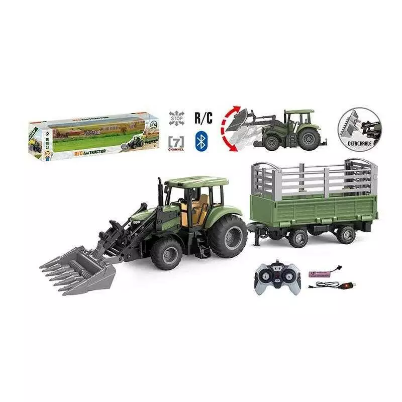 Трактор на радіокеруванні 1908-2 AT (15) підіймання навісного обладнання, керування з додатка, Bluetooth, акум. 3.7 V, пульт, гумові шини, в коробці