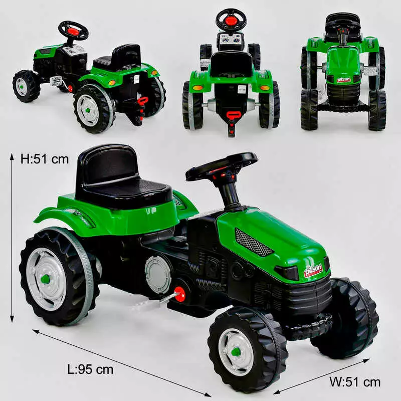Трактор педальный Pilsan 07-314 (1) цвет ЗЕЛЁНЫЙ, класксон на руле, в коробке