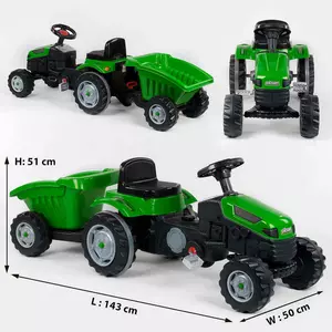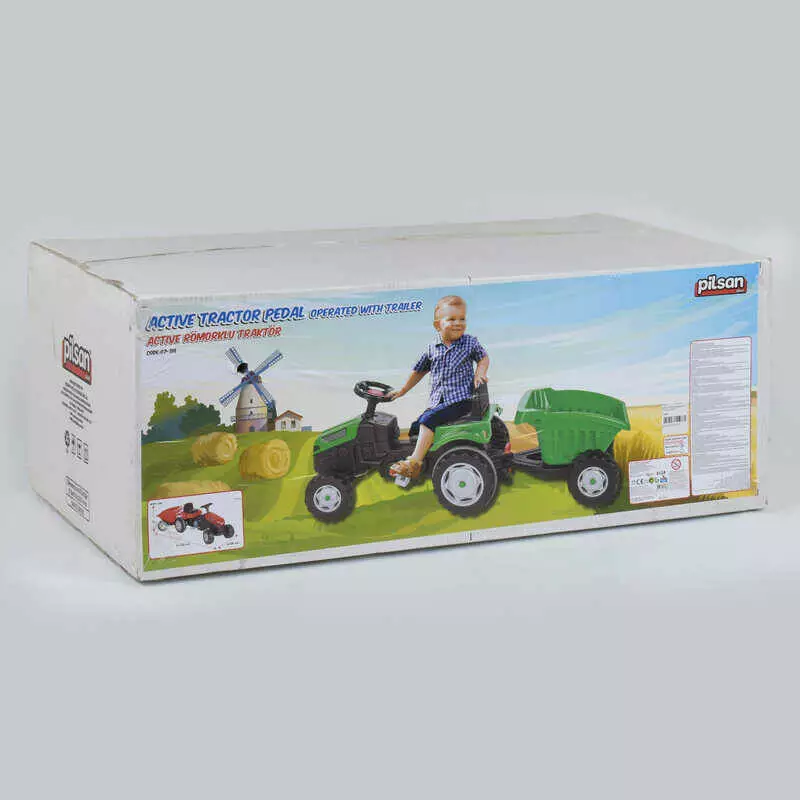 Трактор педальний з причепом Pilsan 07-316 GREEN (1) клаксон на кермі, сидіння регульоване, задні колеса з гумовими накладками, в коробці