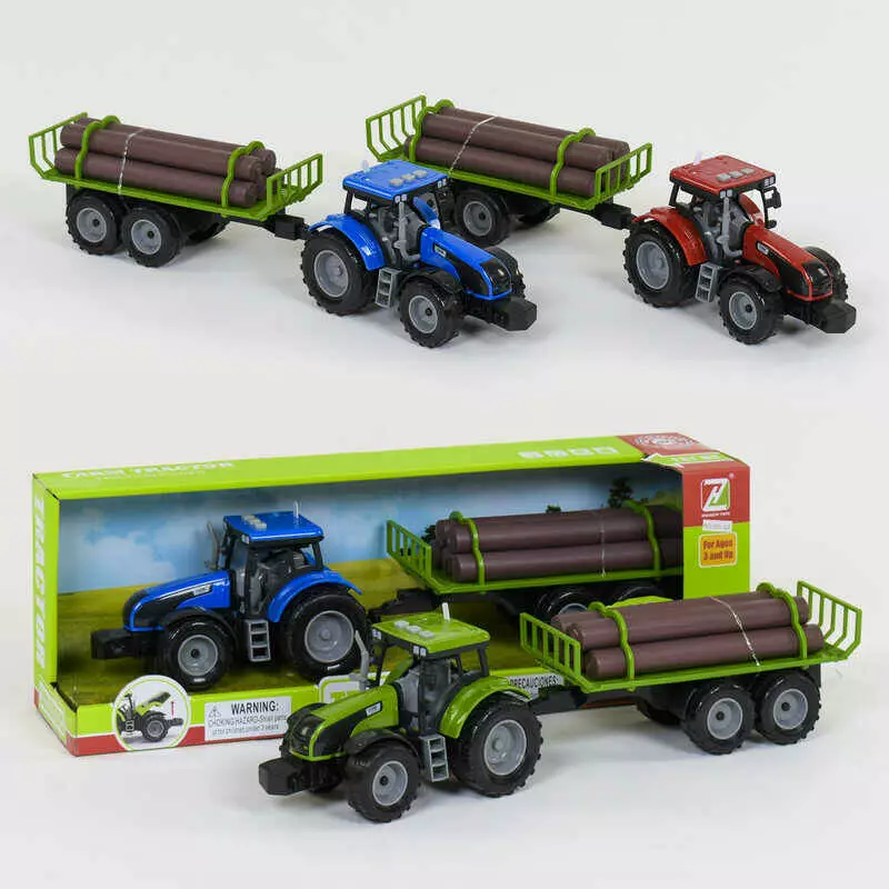 Трактор с прицепом 550-52 J (36/2) 3 цвета, свет, звук, инерция, в коробке