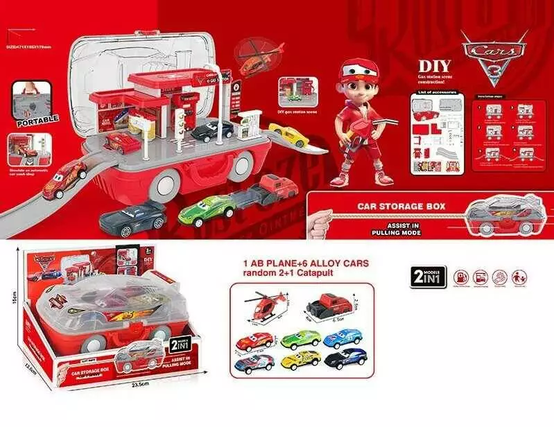 Трек 2812 (64/2) 2 металопластикові машинки, гелікоптер, запускач, в коробці