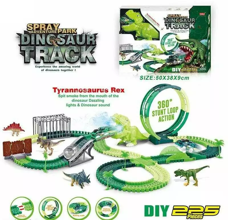 Трек 354 (18/2) світло, звук, дино майданчик, 225 елементів, довжина треку 500 см, аксесуари, в коробці