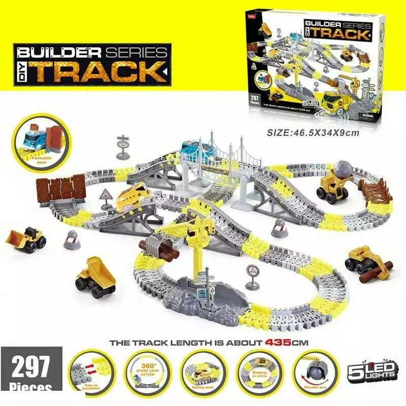 Трек 388 (24/2) 297 деталей, “Будівельна техніка”, машинка на батарейках, підсвічування, декорації, в коробці