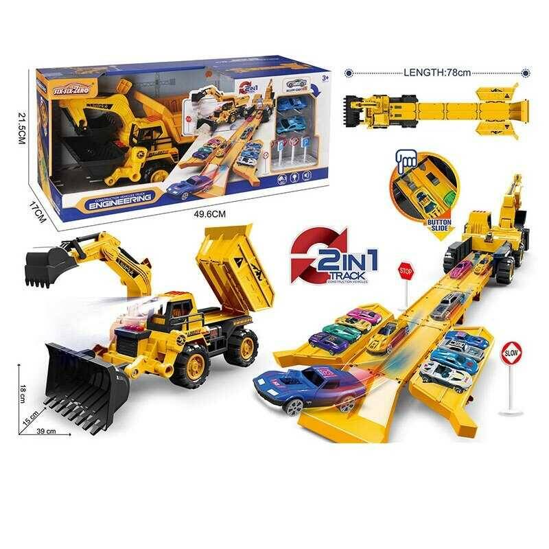 Трек 660 S-98 Штрихкод = 64287 (16/2) 2 металопластикові машинки, спецтехніка, рухливий ківш, звуки, мелодія, підсвічування, в коробці