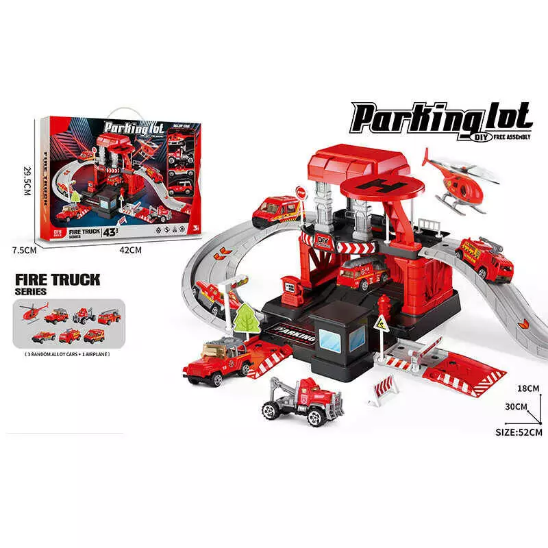 Трек 666-01 (24) 3 металопластикові машинки, гелікоптер, 2 рівні, муляжі оточення, наліпки, в коробці