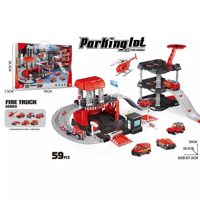 Трек 666-07 (18) 3 металопластикові машинки, гелікоптер, 3 рівні, муляжі оточення, наліпки, в коробці