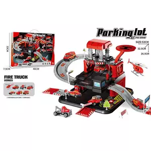 Трек 666-10 (24) 3 металопластикові машинки, гелікоптер, 3 рівні, муляжі оточення, наліпки, в коробці
