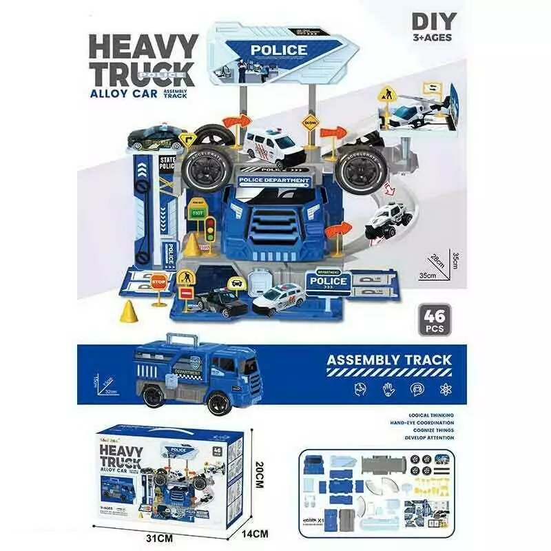 Трек 6664 (36/2) "Поліція", 2в1, вантажівка+трек, 46 елементів, металопластикова машинка, пластикові колеса, в коробці
