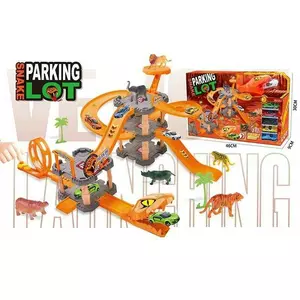 Трек 8865 (24/2) 3 рівні, 6 металопластикових машинок, механічний запускач, фігурки тварин, в коробці