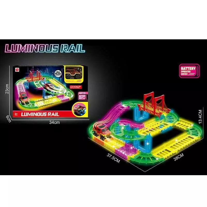 Трек 888-129 (60) люмінесцентний, довжина 38см, 46 деталей, машинка, автоматична їзда, підсвічування фар, в коробці
