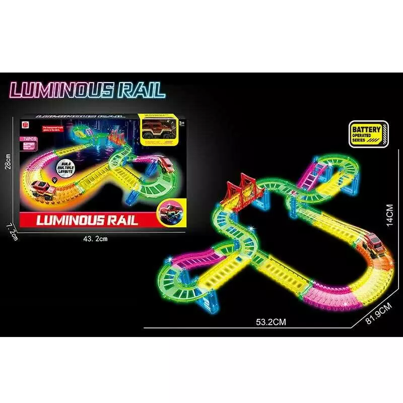 Трек 888-132 (36) 74 елементи, люмінесцентний, машинка на батарейці, підсвічування, в коробці
