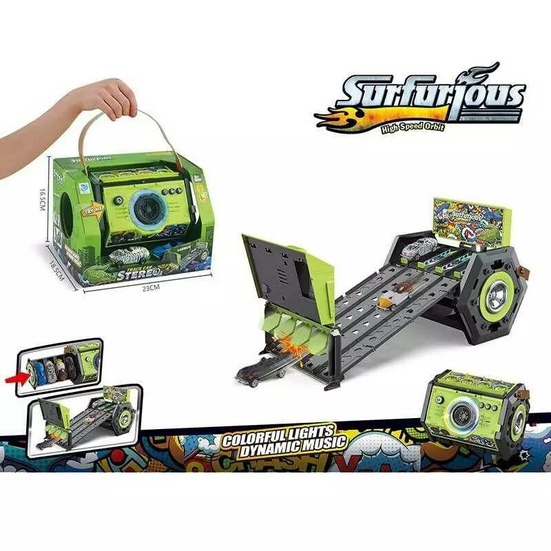 Трек 8899-8 (36/2) довжина: 33 см, підсвічування, звуки, музика, механічний запускач, 2 металопластикові моделі: 7.5 см, фініш, в коробці