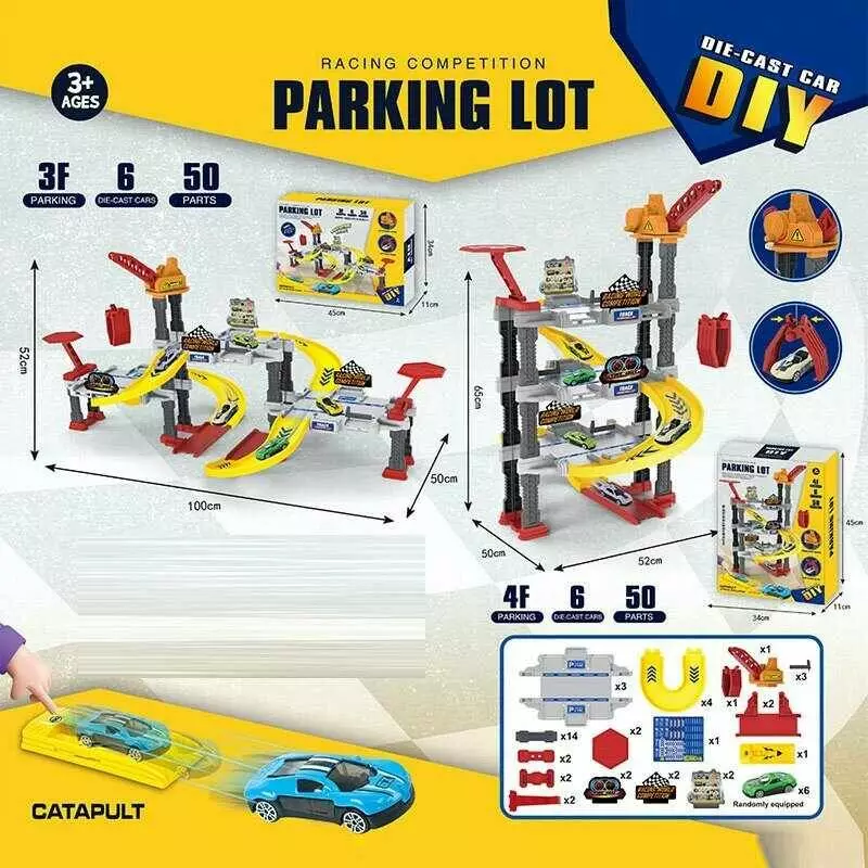 Трек 939-304 (24) парковка, 50 елементів, механічний підйомник, катапульта, 6 металопластикових машин, в коробці