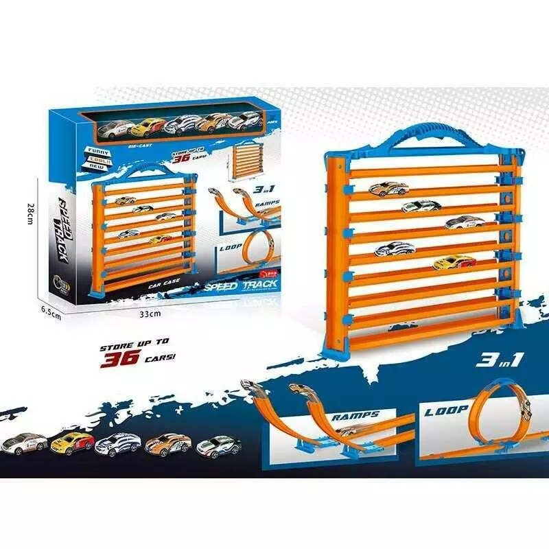 Трек 990 (36) 3в1, трампліни, трюкові петлі, 5 металопластикових машинок, в коробці