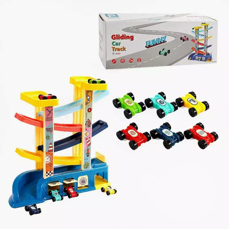 Трек 9906 (36) 6 машинок, 4 рівні, гараж, наліпки, в коробці