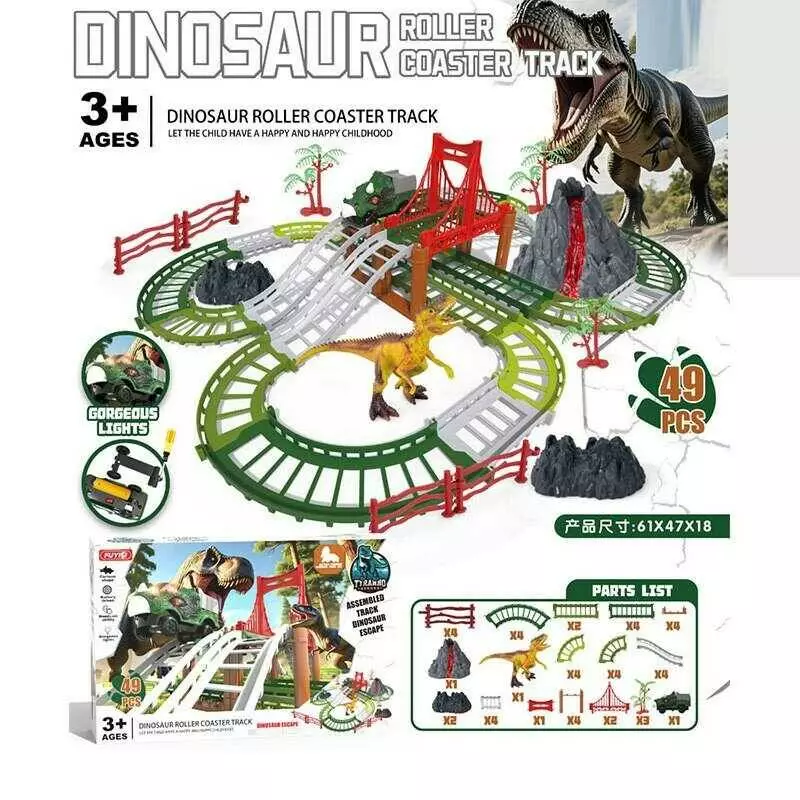 Трек FYS-DN 5 (36) 49 елементів, машинка на батарейках, фігурка динозавра, в коробці