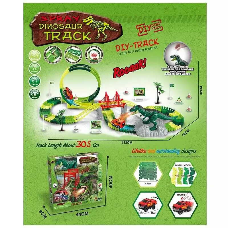 Трек GD 29 A (18/2) 146 деталей, звук, підсвічування, динозавр, парогенератор, машинка, довжина треку 305 см, аксесуари, в коробці