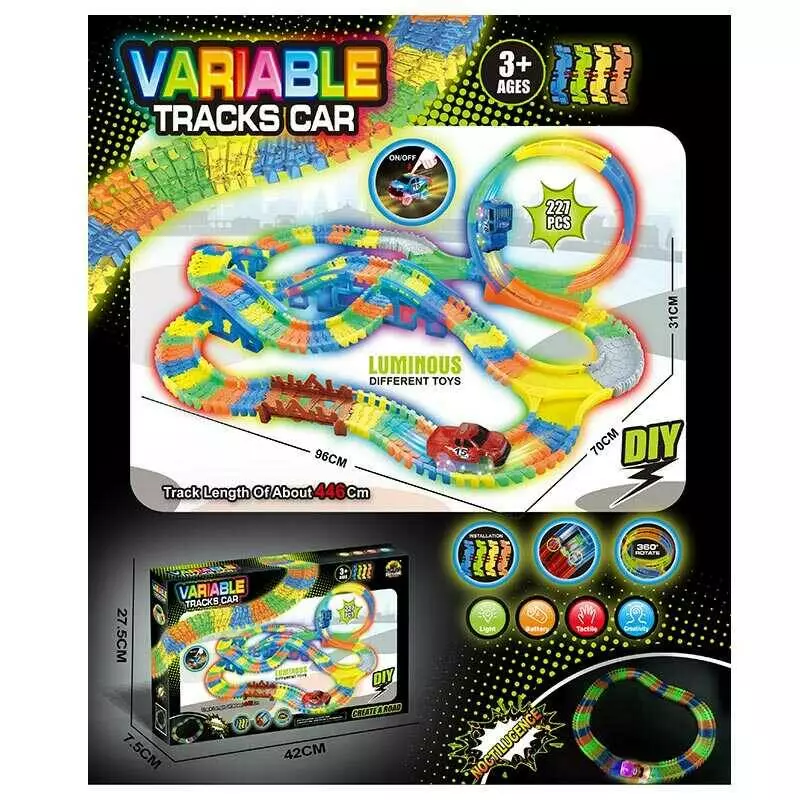 Трек GD 80 A (24) світло, машинка на батарейках, люмінесцентний, автоматичний рух, звук, 227 елементів, довжина треку 446 см, в коробці