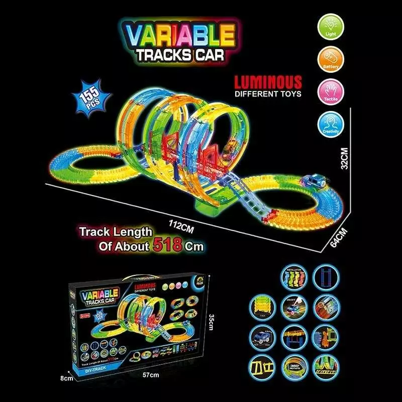 Трек GD 8003 A (18) 155 елементів, підсвічування, 2 машинки, автоматичний рух, довжина треку 518 см, в коробці