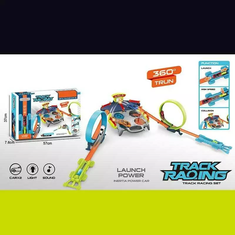 Трек JJ 167 (18) підсвічування, звуки, 2 металопластикові машинки, запускачі, в коробці