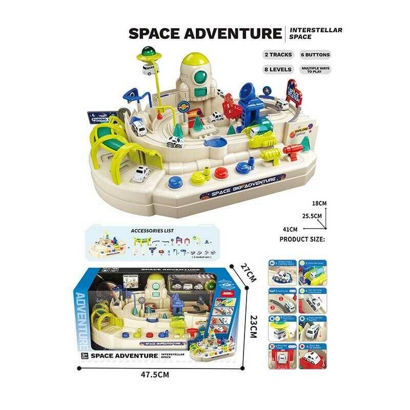 Трек JP 588-26 (9) механічний принцип роботи, 3 машинки, рухливі елементи, механічний підіймач, перешкоди руху, в коробці