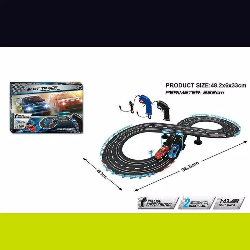 Трек на р/к JJ 201-1 (12) траса 48х96 см, світло, 2 машинки, масштаб 1:43, 2 пульти керування, підключення до траси за допомогою проводу, в коробці