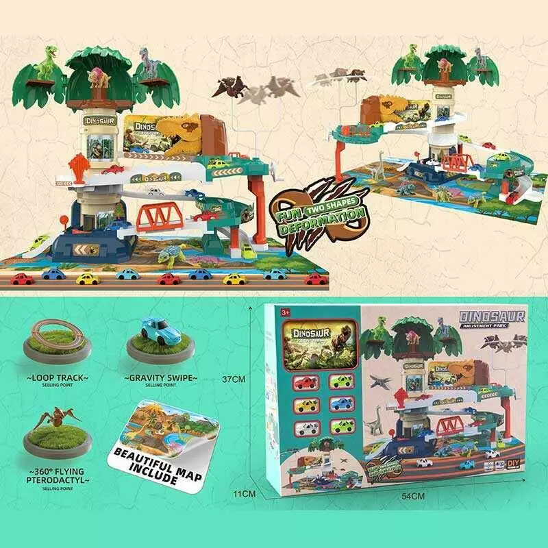 Трек XZ 1068 (10) 2 варіанти збору, автоматичний підйомник, 2 режими: беззвучний та з мелодією, 6 машинок, в коробці