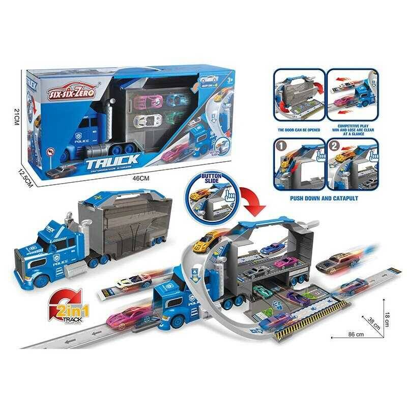 Трейлер 660 S-43 (24/2) “Поліція”, 4 металопластикові машинки, запускач, дорожні знаки, в коробці
