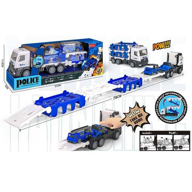 Трейлер 8900 (96/2) трек, довжина - 78 см, інерція, 1 машинка, механічний запускач, гумові шини, в коробці