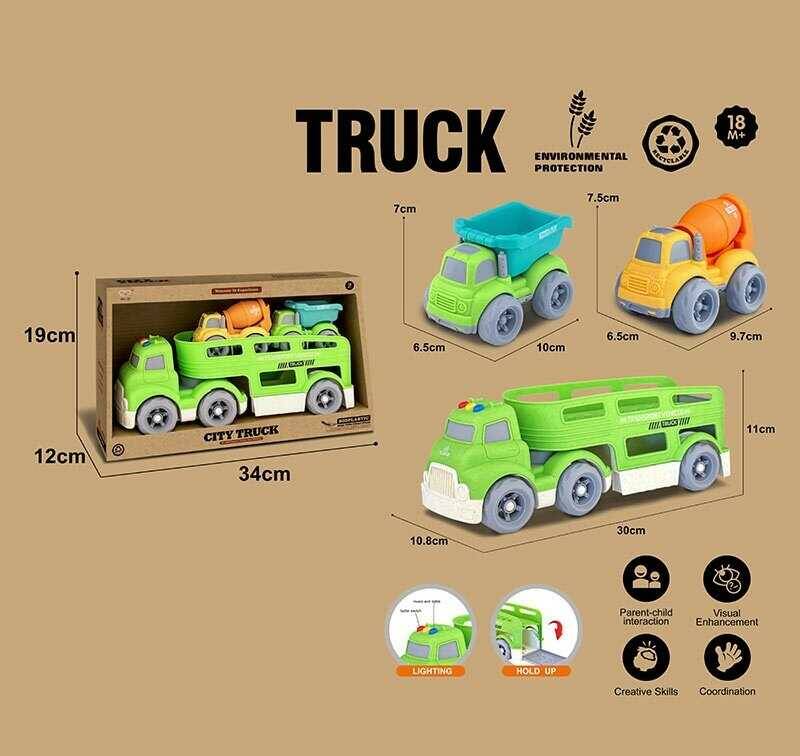 Трейлер 921-12 (36/2) підсвічування, кумедні звуки, мелодії, звуки транспорту, довжина 30 см, 2 спецтехніки, рухомі елементи, біопластик, в коробці