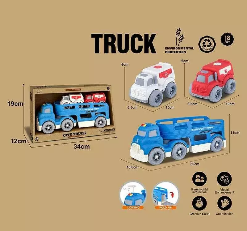 Трейлер 921-15 (36/2) підсвічування, кумедні звуки, мелодії, звуки транспорту, довжина 30 см, 2 спецтехніки, рухомі елементи, біопластик, в коробці