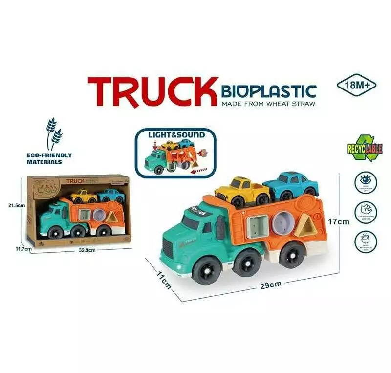 Трейлер 933-881 AM (24/2) звуки, мелодія, підсвічування, 2 машинки, геометричний сортер, з біопластику, в коробці