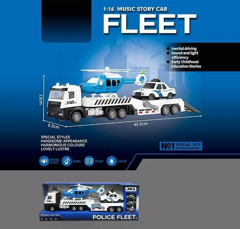 Трейлер D 2462 (36/2) звуки, підсвічування, інерція, масштаб 1:16, машинка, гелікоптер, в коробці