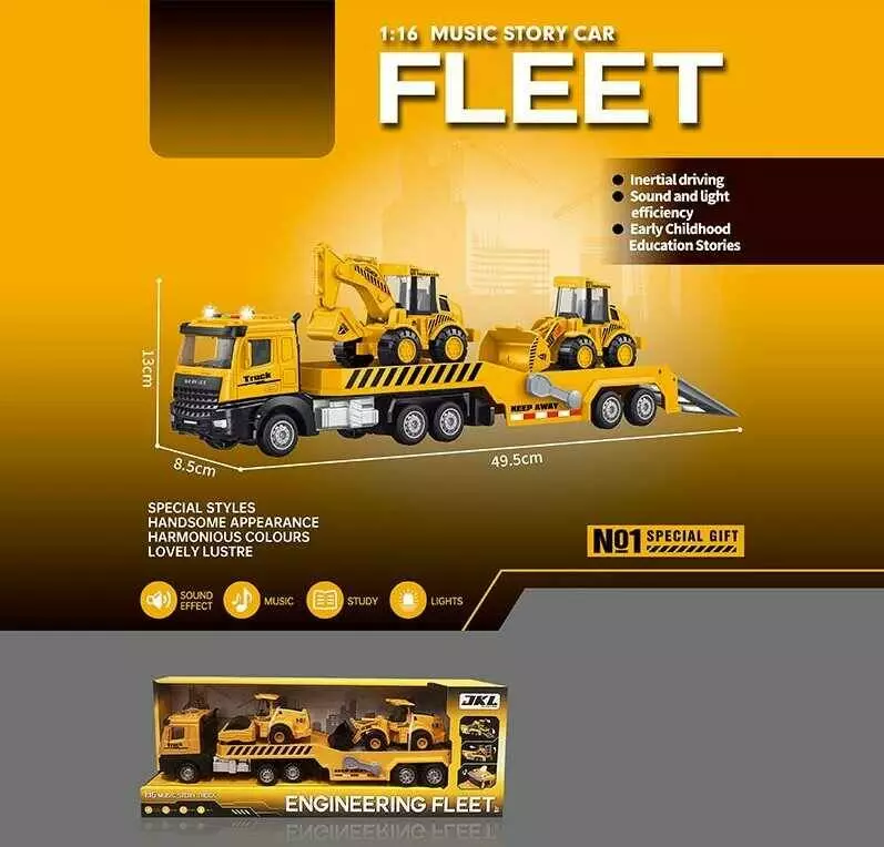 Трейлер D 2464 (36/2) звуки, підсвічування, інерція, масштаб 1:16, 2 екскаватори, в коробці