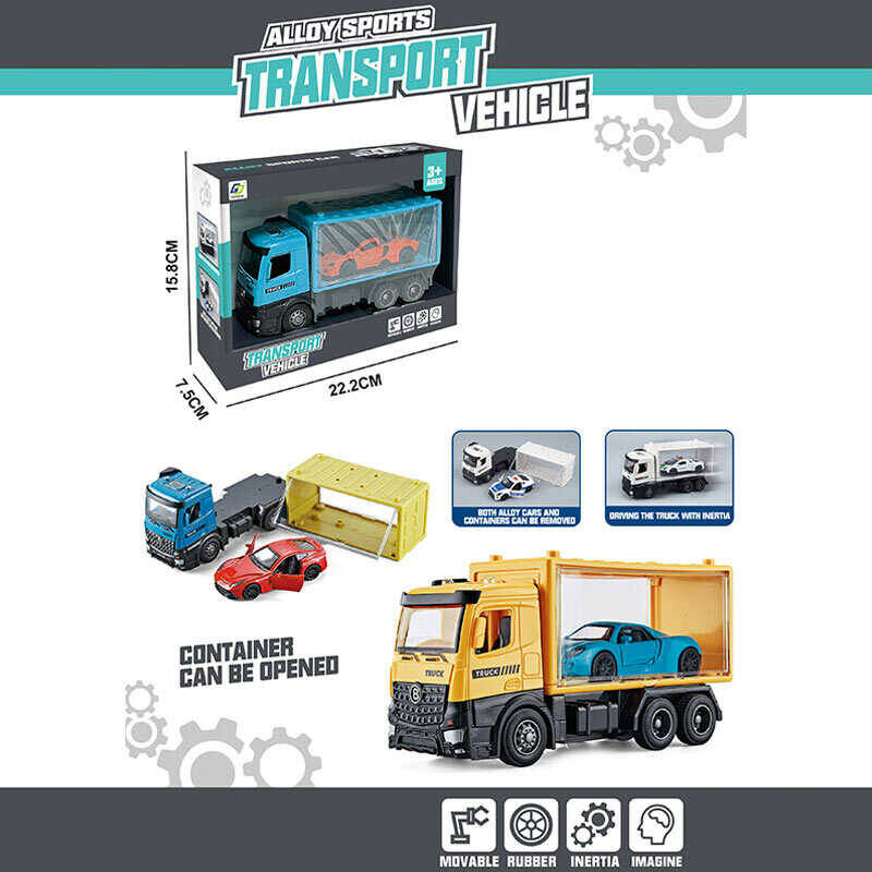 Трейлер G 712 (72/2) 2 види, інерція, металопластикова машинка, контейнер відчиняється, рухомі елементи, гумові шини, в коробці