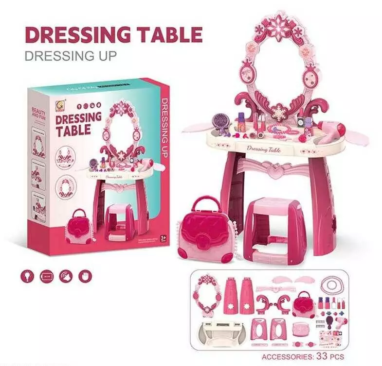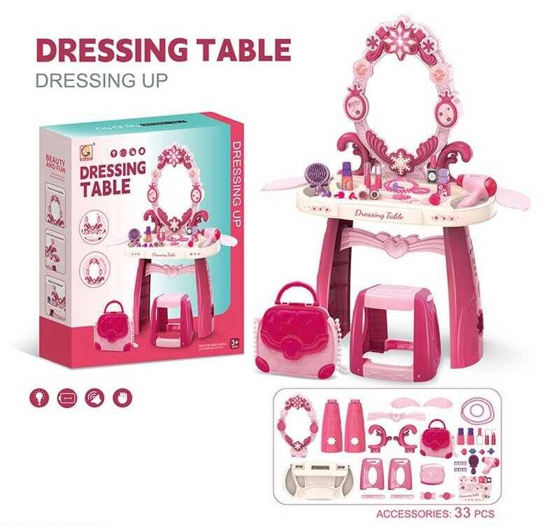 Трюмо 1206-1 (12) 44х24,5х76 см, стілець, люстерко, підсвічування, звуки, на батарейках, сумка, імітація косметики, фен, в коробці