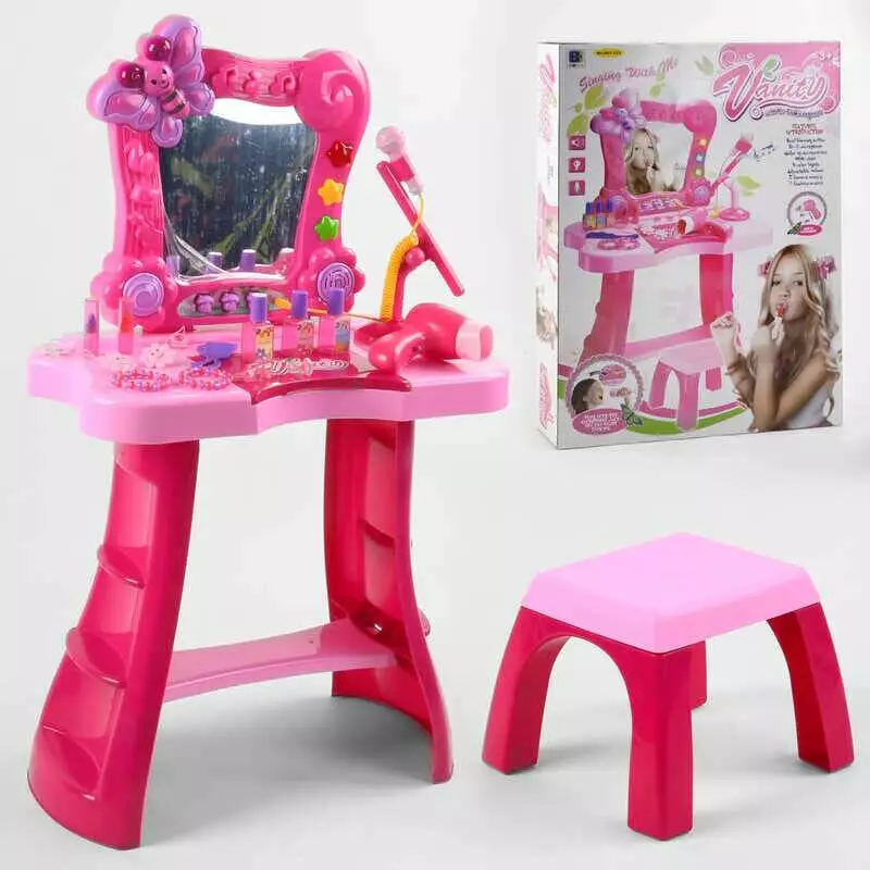 Трюмо 661-123 (6) на батарейках, зі стільчиком, світло, звук, мікрофон, фен на батарейках, 13 аксесуарів, в коробці