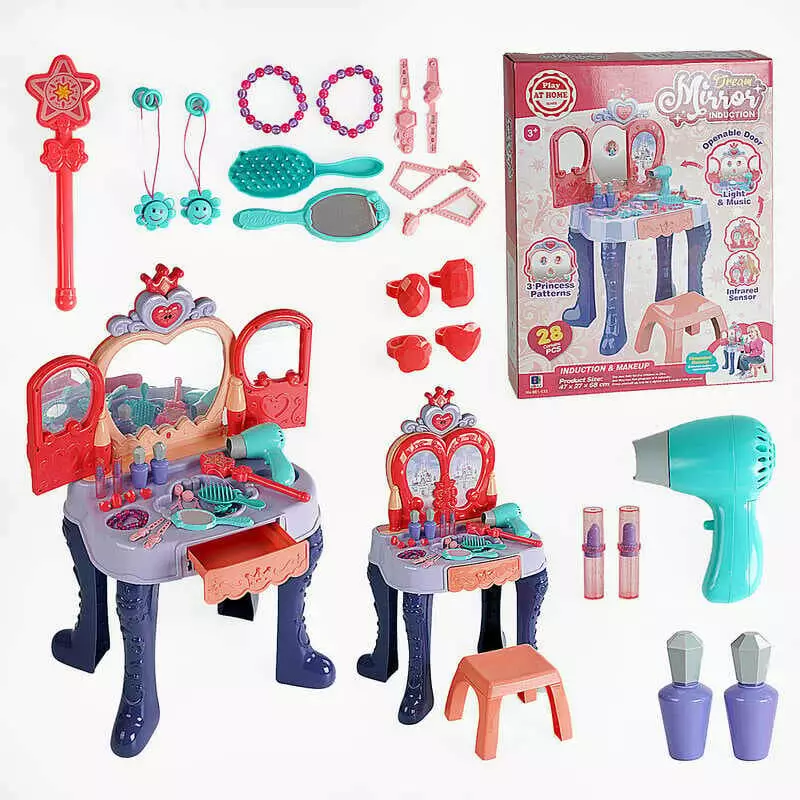 Трюмо 661-132 (6) 28 елементів, світло, звук, фен на батарейках, стільчик, аксесуари, в коробці