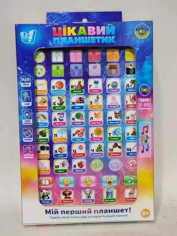 Цікавий планшетик 94568 (144/2) "WToys", ОЗВУЧУВАННЯ УКРАЇНСЬКОЮ МОВОЮ, казки, пісні, абетка, цифри, екзамен, скоромовки, загадки, музика, в коробці