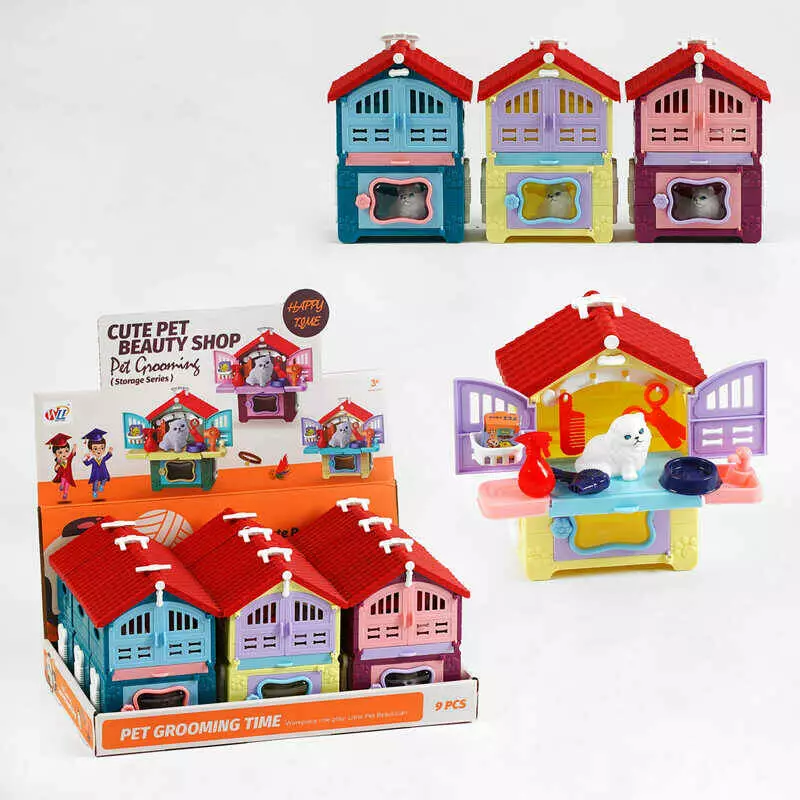 Тварини 9988-78 (16) ЦІНА ЗА 9 ШТУК В БЛОЦІ, фігурка котика, набір для грумінгу, будиночок