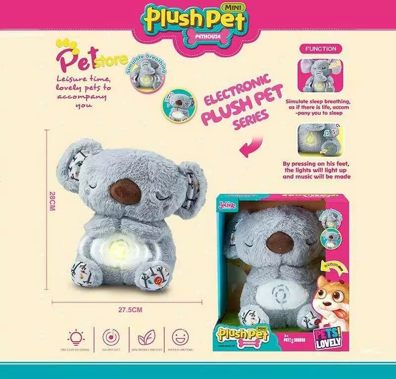 Інтерактивна іграшка MC 1110 (18) “Коала”, висота 28 см, підсвічування, сплюшка, мелодія, дихає, на батарейках, для сну, в коробці