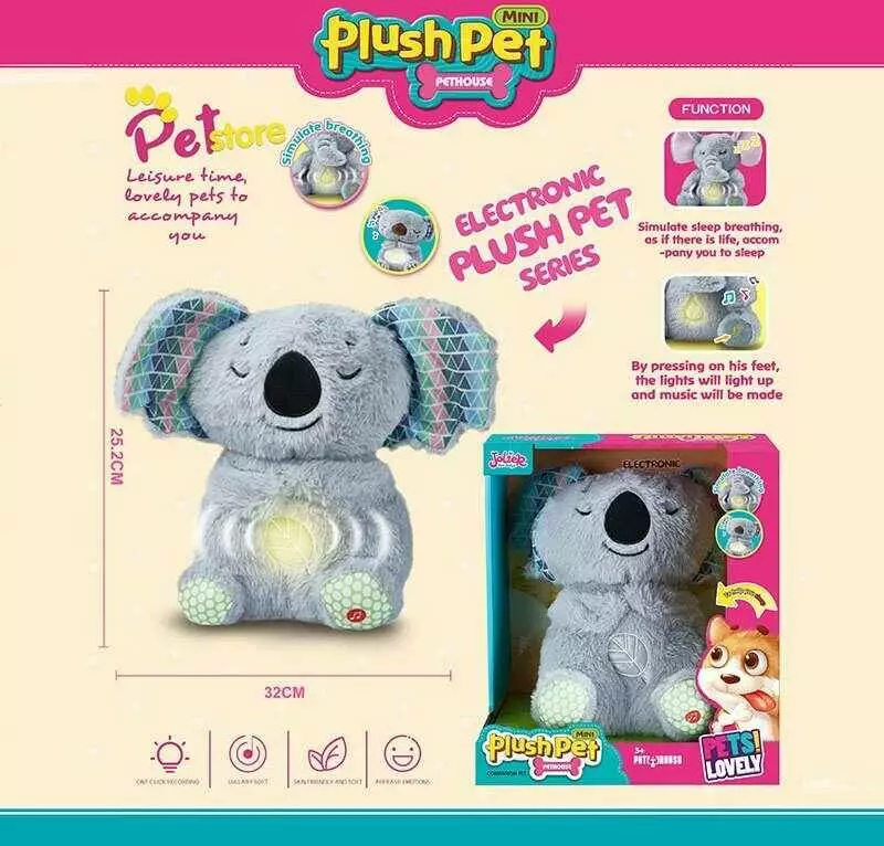 Інтерактивна іграшка MC 1111 (18) “Коала”, висота 25 см, підсвічування, сплюшка, мелодія, дихає, на батарейках, для сну, в коробці