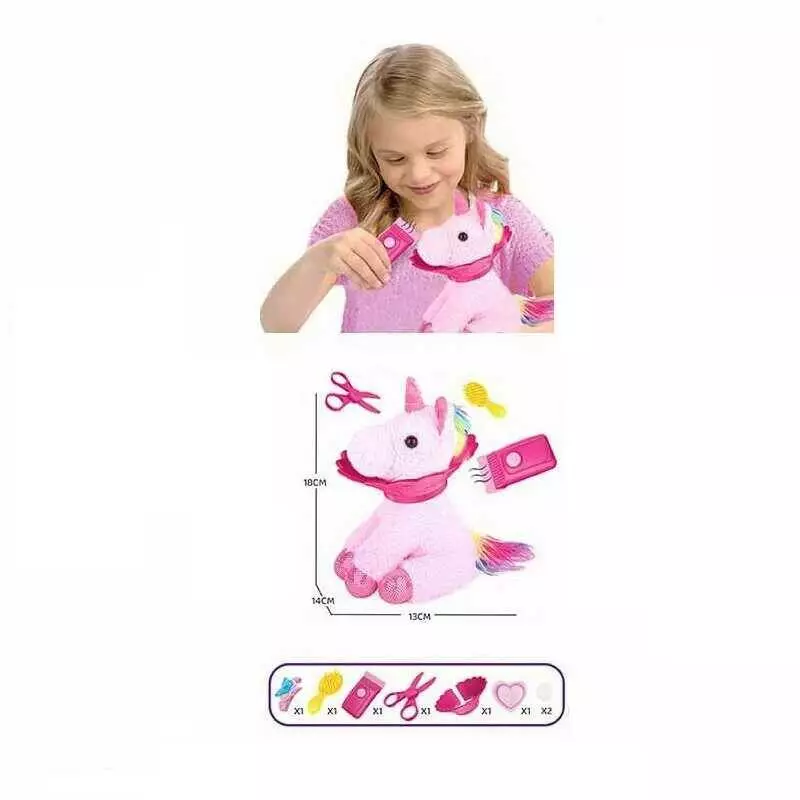 Тваринка з аксесуарами DR 5108 (48/2) “Єдиноріг”, м’яка іграшка, набір грумера, 6 аксесуарів, у пакеті