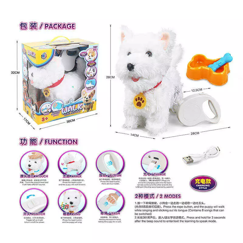 Улюбленець 55 G-13 (12/2) пісні англ., реаг. на дотик, повторює слова, ходить, звуки, рух голови (ніби облиз.), виляє хвост., акум. 3..7 V,, в коробці