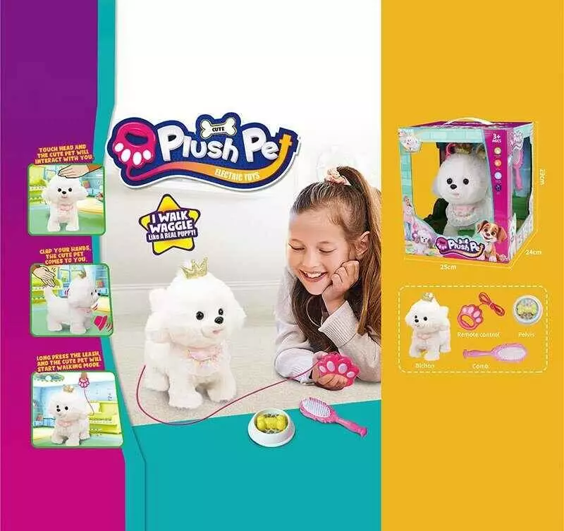 Улюбленець 933-191 E (12) “Собачка”, повідець-пульт керування, ходить, гавкає, рухає хвостиком, реагує на дотик та плескіт долонь, в коробці